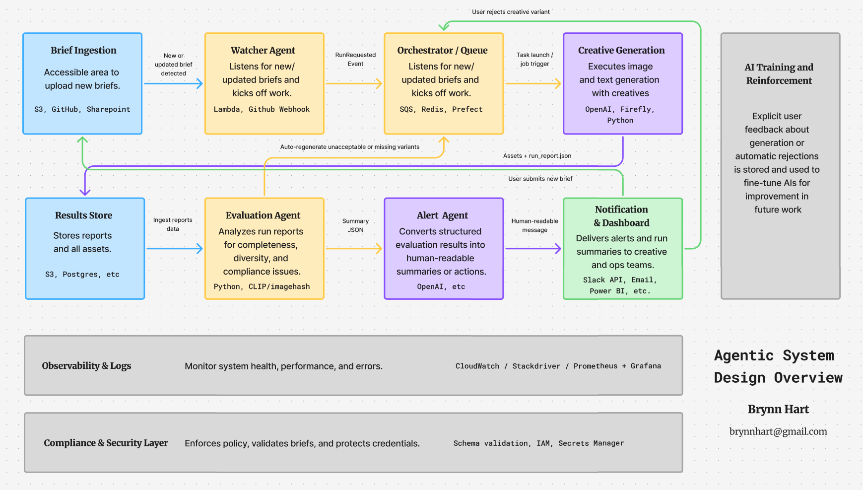 Designed an agent-driven automation system to generate, validate, and deliver creative assets at enterprise scale.